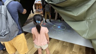 の9階奥のコーナーで、物体に映像が追従する(タンジブル)学習システム2種類や、非接触のクイズマシン、床プロジェクション、文字モザイク(メディアアート)、スポーツ選手と自分の動きを並べて比べるシステムなどをデモ展示しました。多数のご来場・ご体験、どうもありがとうございました。