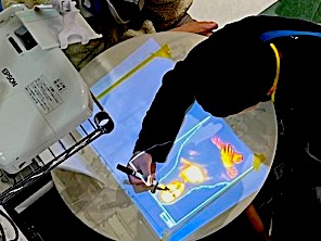 紙の上に投影された名画をなぞって体験しよう